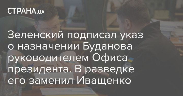 Зеленський підписав указ про призначення Буданова керівником Офісу президента. У розвідці його замінив Іващенко
