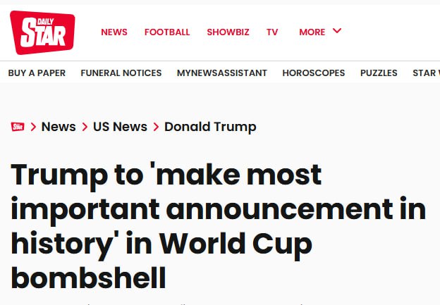 За словами режисера, Дональд Трамп має намір виступити з оголошенням на чемпіонаті світу з футболу 2026 року, яке "назавжди змінить людство".