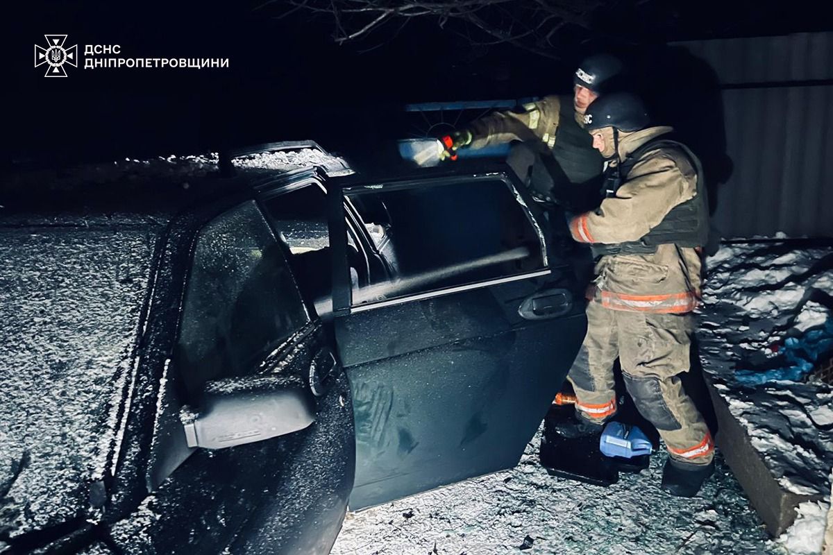 У місті Нікополь внаслідок влучення загорівся легковий автомобіль.