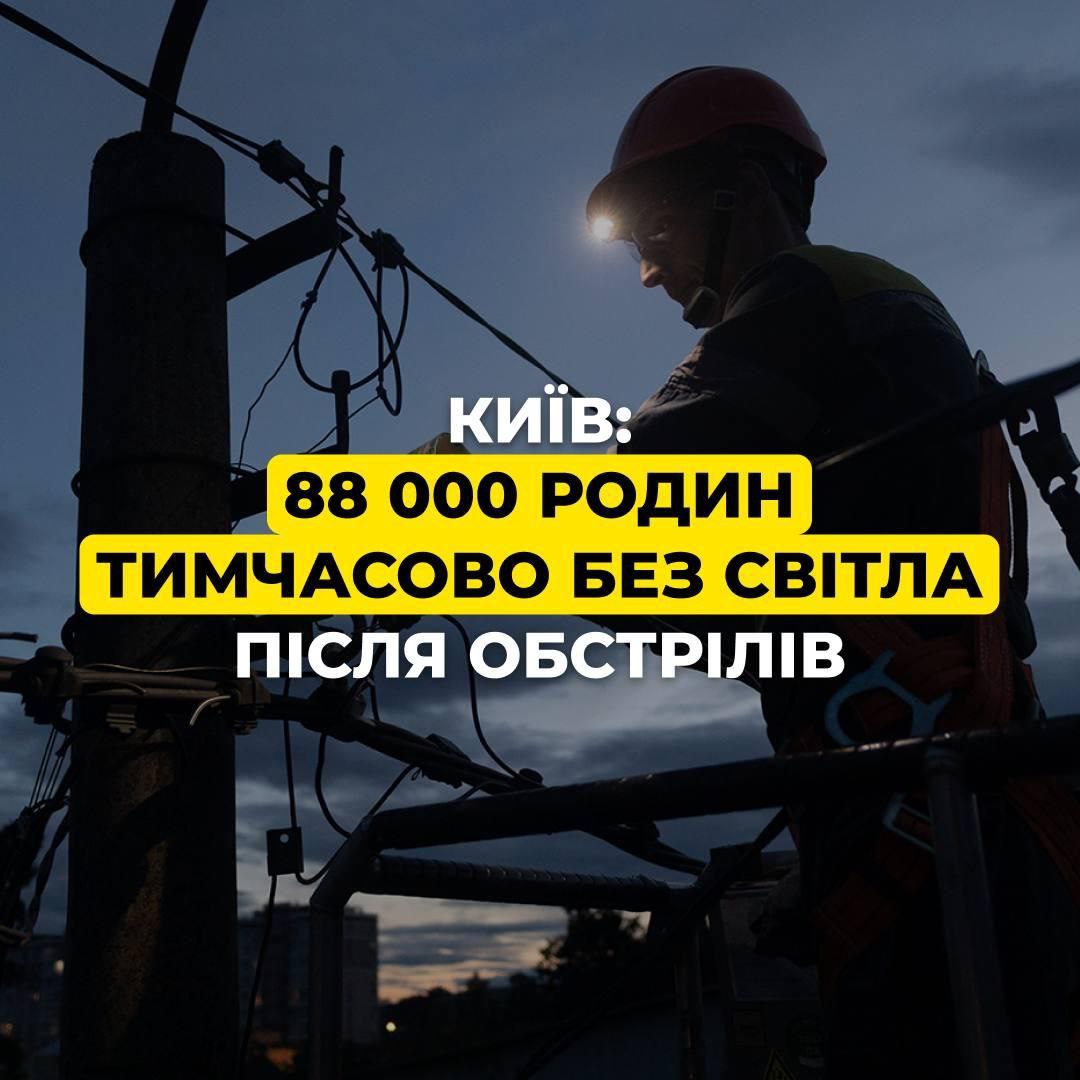 9:47 У Києві наразі майже 90 тисяч домогосподарств без світла, повідомляє ДТЕК.