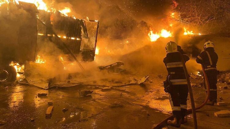 Наслідки одного із ударів по енергетичній інфраструктурі. Фото: ДСНС