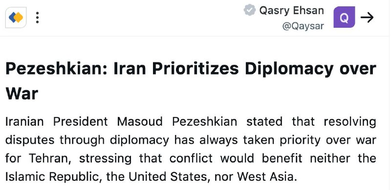 Напередодні Пезешкіан заявляв, що Тегеран віддає перевагу дипломатії війні, але "не може бути примушений до переговорів за допомогою погроз або насильства".