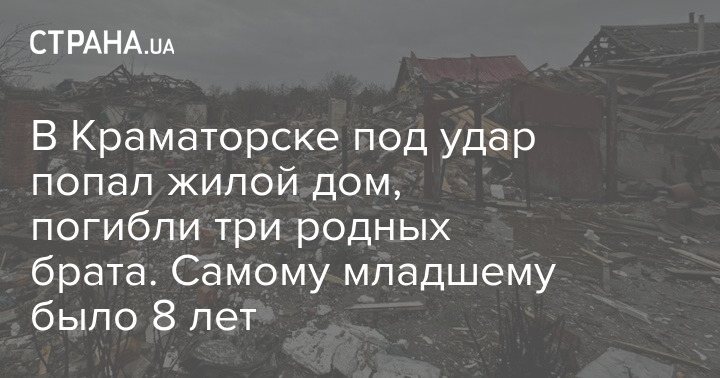 У Краматорську Донецької області під час російського удару у зоні поразки виявився житловий сектор. Сильно зруйновано будинок, де мешкала сім'я. Троє братів загинули, їхня мати та бабуся отримали поранення.