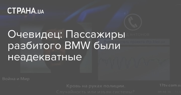В автомобиле BMW, во время преследования которого был убит один из пассажиров, находились мужчины в неадекватном состоянии. Об этом в эфире 17 канала заявил руководитель портала ДТП.ua Влад Антонов. По его словам, корреспондент издания был на месте ДТП через 10 минут после происшествия.