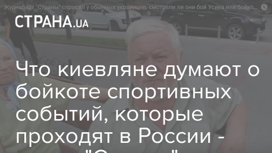 Большинство жителей Киева признались, что смотрели бой украинского боксера Александра Усика против Мурата Гассиева, которые вышли на ринг в Москве. Люди не поддерживают бойкот выступлений украинских спортсменов в России и призывают разделять понятия "спорт" и "политика".