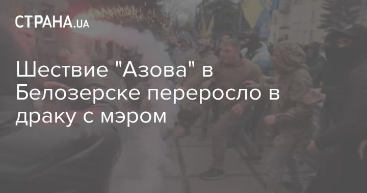 В Белозерске, Донецкая область, пару дней назад, 24 февраля, прошло шествие активистов гражданского корпуса полка "Азов", сообщает "Радио Свобода".