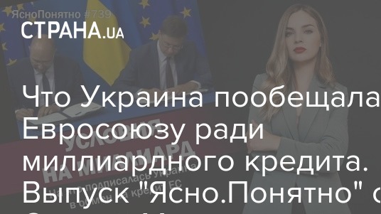 В новом выпуске блога "Ясно.Понятно" Олеся Медведева разбирается, что Украина пообещала Евросоюзу в обмен на миллиард с лишним евро.