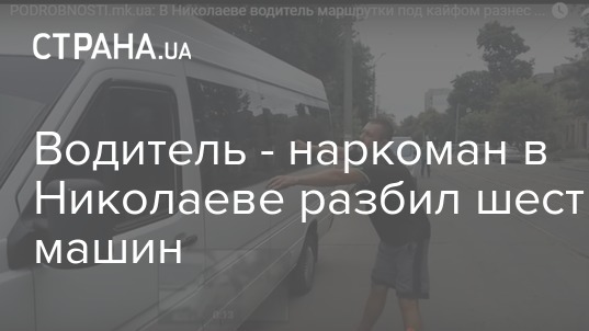 В Николаеве водитель-наркоман на маршрутке протаранил 5 машин. Днем в четверг, 25 августа, водитель маршрутки «Volkswagen», находясь в состоянии наркотического опьянения совершил дорожно-транспортное происшествие с участием шести машин портал Novosti-n.org.