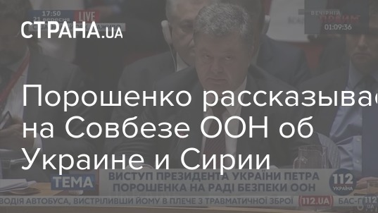 Президент Украины Петр Порошенко выступает на Совете безопасности ООН. Он заявил, что Совет безопасности ООН продемонстрировал свою неэффективность в разрешении конфликта в Сирии, а также в реагировании на агрессию России против Украины и нуждается в реформировании.