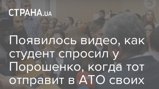 Студент Киевского национального университета имени Тараса Шевченко на встрече с президентом Петром Порошенко встречный вопрос по поводу годичного пребывания в зоне АТО. Студент спросил главу государства, когда в зону АТО он отправит собственных детей.