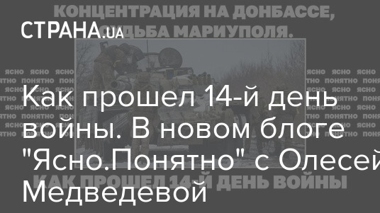 Что произошло в Украине в последний день второй недели войны подробно рассказала Олеся Медведева в новом выпуске своего блога "Ясно.Понятно":