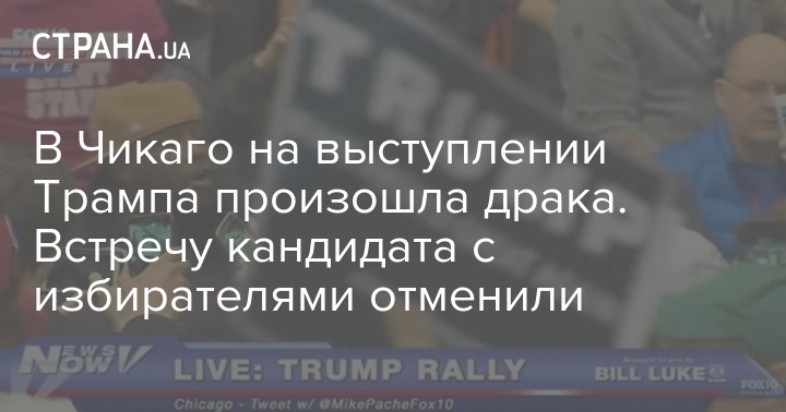 Выступление кандидата от Республиканской партии США Дональда Трампа в Чикаго спровоцировало драку с участием его сторонников и противников. В результате несколько человек, в том числе двое полицейских, получили травмы различной степени тяжести. Массовый хаос вынудил организаторов отменить мероприятие.
