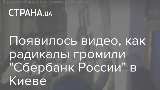 "17 канал" обнародовал подробное видео погрома отделения "Сбербанка России" на площади Льва Толстого в Киеве.