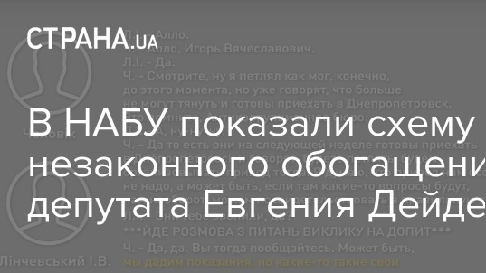 В Национальном антикоррупционном бюро Украины обнародовали схему незаконного обогащения нардепа Евгения Дейдея, а также аудиозаписи некоторых телефонных разговоров, которые подтверждают, что финансовое обязательство было отмечено нардепом в декларациях вероятно с целью легализации источников получения (происхождения) средств.