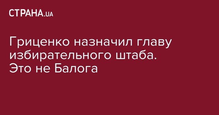 20 октября стало окончательно известно, что штаб Гриценко не будет возглавлять Виктор Балога - именно такая информация распространялась ранее.
